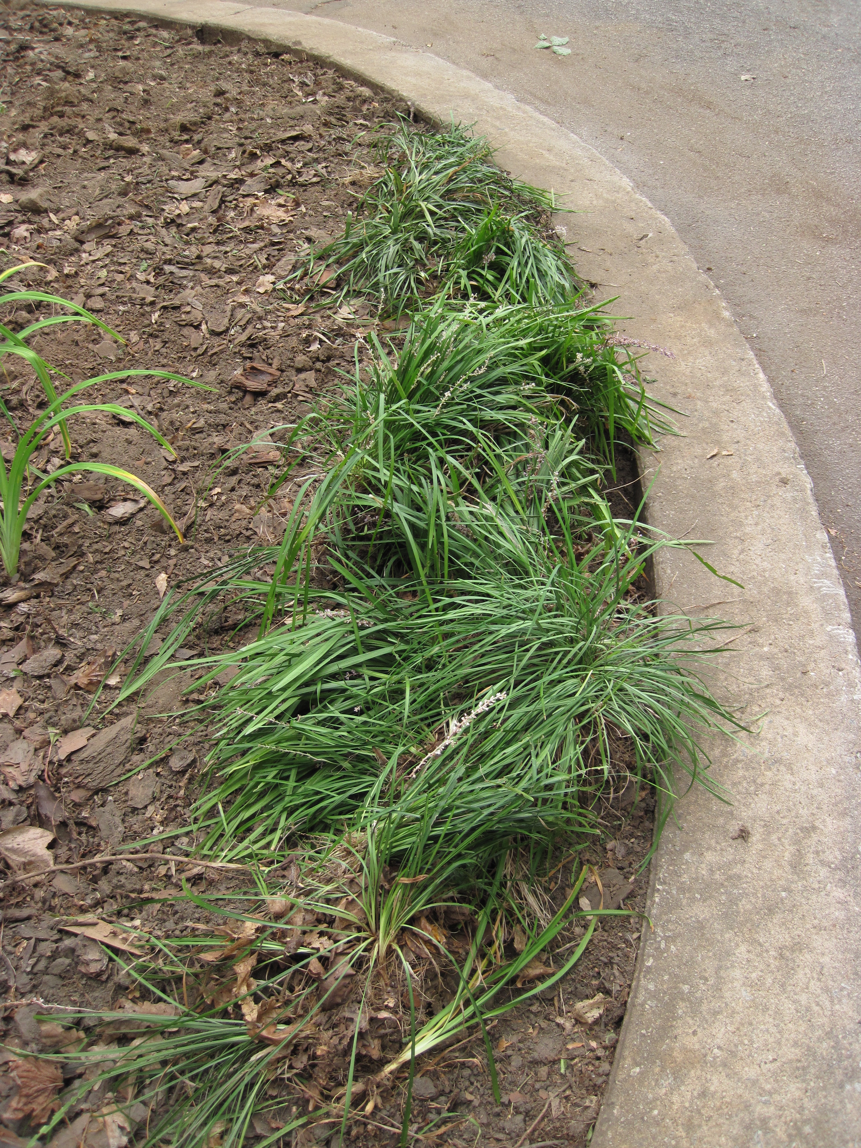 We dug up some monkey grass (Liriope) that we’d like you to please take home with you! It is already dug up and just sitting along the edge of the traffic circle ready for anyone to take home. See photo below.